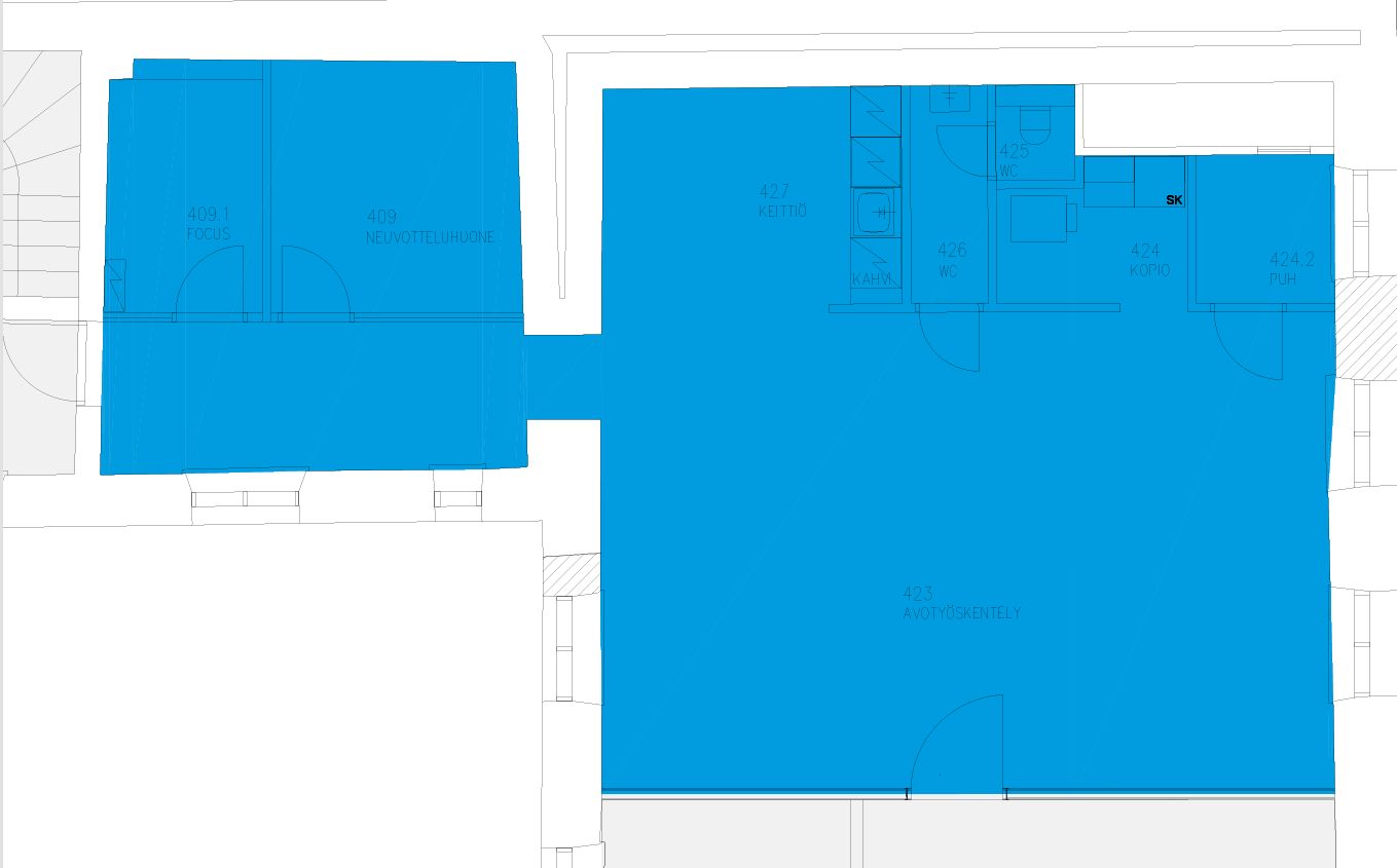 Vuokrattavana 4. kerroksen upeaa, siistiä ja modernia toimistotilaa. Toimistossa on avotilaa, neuvotteluhuone, oma keittiö ja sosiaalitila.