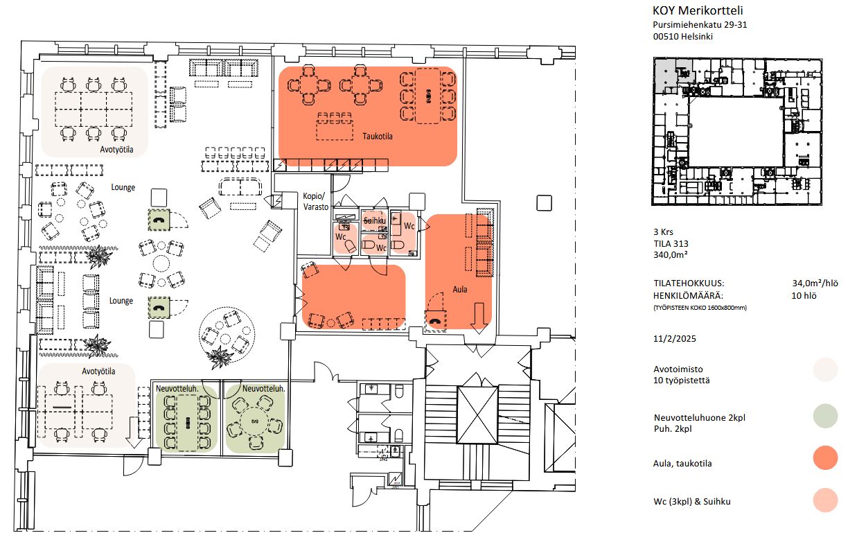 Vapaana toimistotila Merikorttelissa Punavuoressa 340 m²