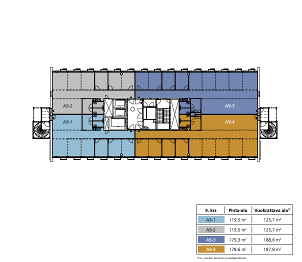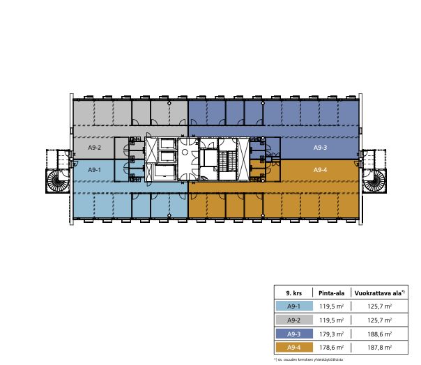 Joustavasti muunneltavissa olevien toimistohuoneistojen pinta-alat vaihtelevat 117:sta neliöstä 550:een neliöön. Pienempiä tiloja on mahdollista vuokrata kiinteistön toimistohotellista. Talon ensimmäisestä kerroksesta löytyy laaja neuvotteluhuonekeskus, jossa on yhteensä 23 neuvottelutilaa 6:n−200:n henkilön tilaisuuksiin.