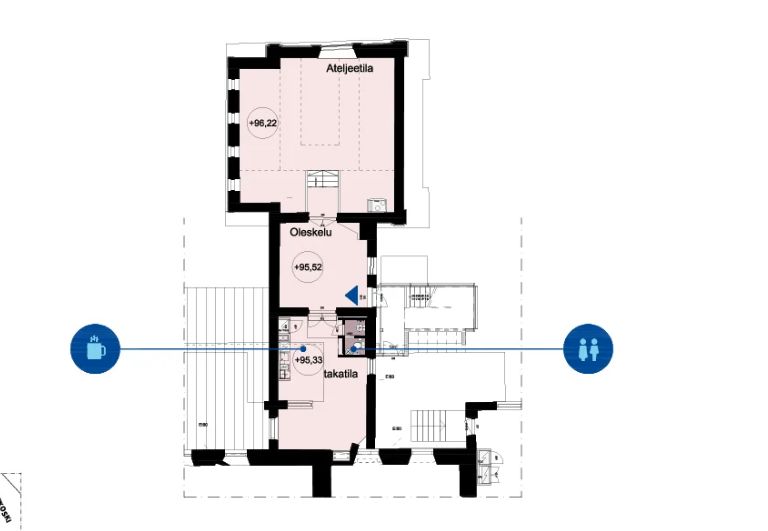 Tämä 144 m² korkea ateljeetila sijaitsee Turbiinirakennuksen 2. kerroksessa. Tilaan on oma sisäänkäynti. Oma keittiö ja wc-tila.