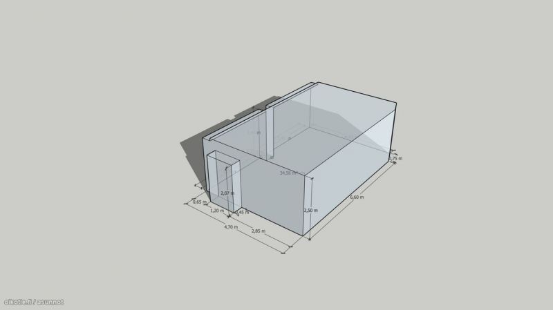 Tila on pinta-alaltaan 35 m² ja sen sisäkorkeus on 2,5 metriä. Tilassa ei ole WC eikä vesipistettä. Alustavan kyselyn mukaan ostajalla on mahdollista rakennuttaa tilaan WC.