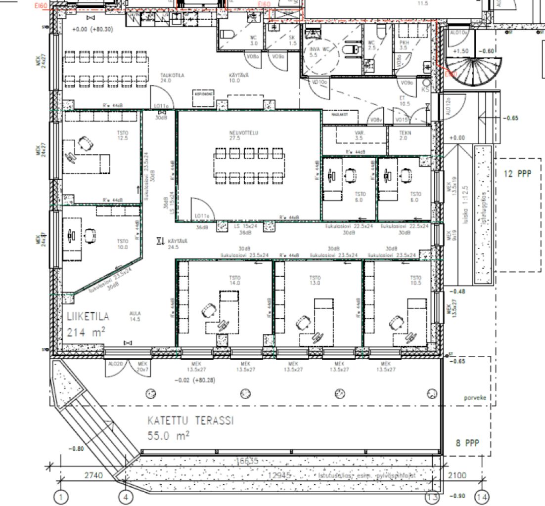 Alimman kerroksen liiketila on suunniteltu toimivaksi ja monikäyttöiseksi kokonaisuudeksi, joka sopii erinomaisesti toimistoksi, vastaanottotilaksi tai asiakaspalveluun. Selkeä ja tehokas pohjaratkaisu tekee tilasta helpon ottaa käyttöön ilman muutostöitä. Laadukkaat materiaalit ja moderni varustelu luovat edustavan ympäristön, joka tukee yrityksesi imagoa ja tarjoaa työntekijöille miellyttävän työympäristön.