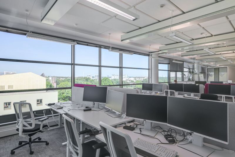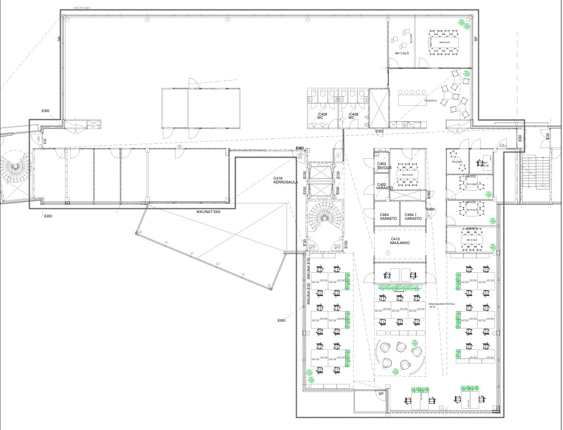 Vuokrattavana ylimmän kerroksen upeaa, valoisaa toimistotilaa. Tilassa on moderni avotila, työhuoneita, neuvottelutilat. Toimistossa on avarat ikkunat.