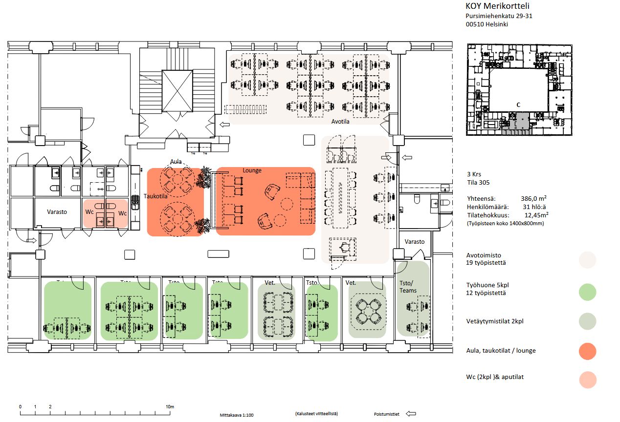 Vapaana toimistotila Merikorttelissa Punavuoressa 385 m²