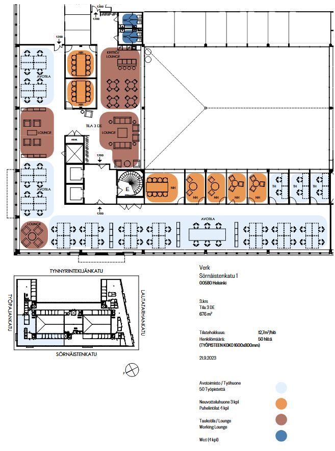 676 m² toimistotilaa, 3. kerros