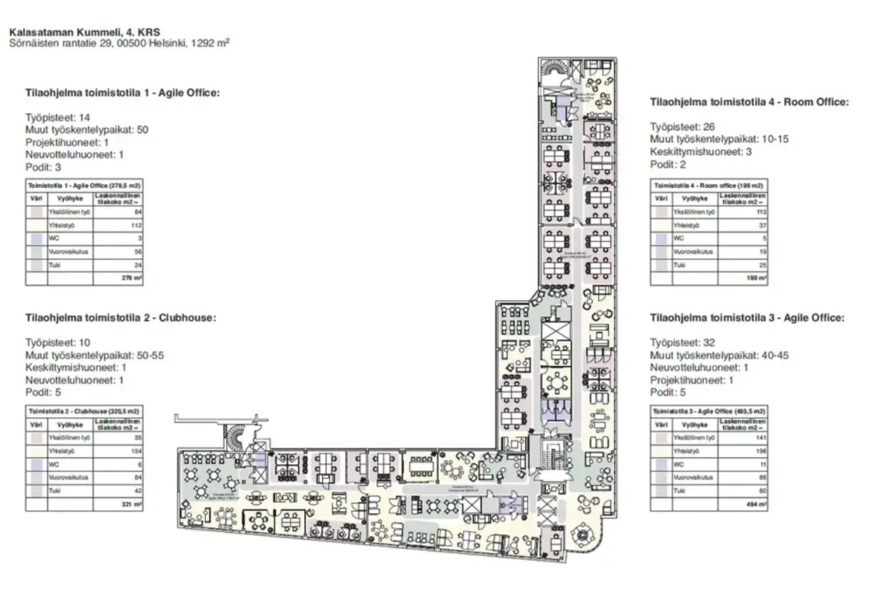 Kiinteistö KALASATAMAN KUMMELI on täyssaneerattu merihenkisellä teemalla moderniin Business Park tyyliin kattavilla palveluilla ja tilaratkaisut on toteutettu uusien käyttäjien yksilöllisten toiveiden ja tarpeiden mukaisesti avo-/kombi tai huonekonttoriksi. Tämä 4. kerroksen tila upeine näkymineen sisältää pääosin avotilaa, huoneita voidaan rakentaa vuokralaisen toiveiden ja tarpeiden mukaan myös lisää. SOITA ja SOVI ESITTELY, palvelumme on tilanhakijalle maksutonta, puh. 09 7745 100.