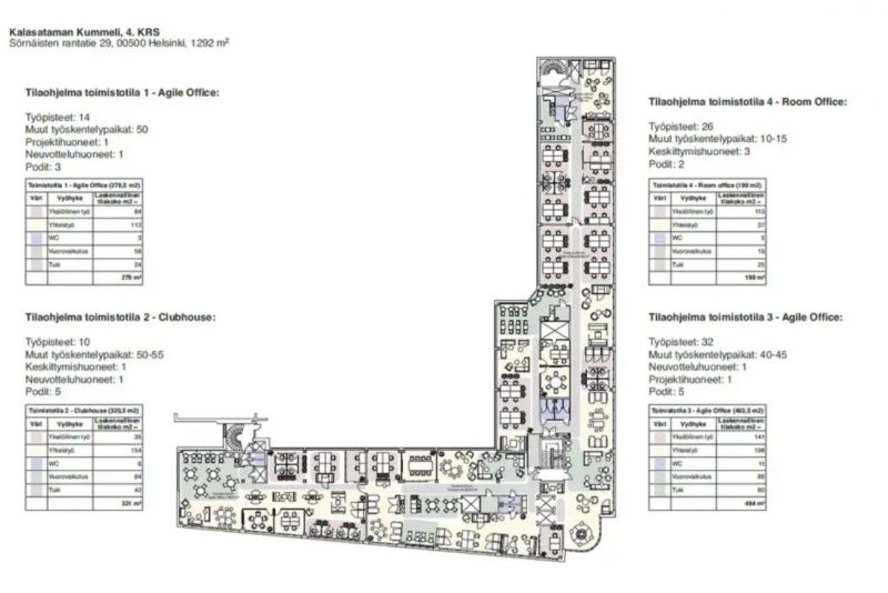 Kiinteistö KALASATAMAN KUMMELI on täyssaneerattu merihenkisellä teemalla moderniin Business Park tyyliin kattavilla palveluilla ja tilaratkaisut on toteutettu uusien käyttäjien yksilöllisten toiveiden ja tarpeiden mukaisesti avo-/kombi tai huonekonttoriksi. Tämä on 4. kerroksen muokattavissa oleva avokonttori, huoneita voidaan rakentaa vuokralaisen toiveiden ja tarpeiden mukaan. SOITA ja SOVI ESITTELY, palvelumme on tilanhakijalle maksutonta, puh. 09 7745 100.