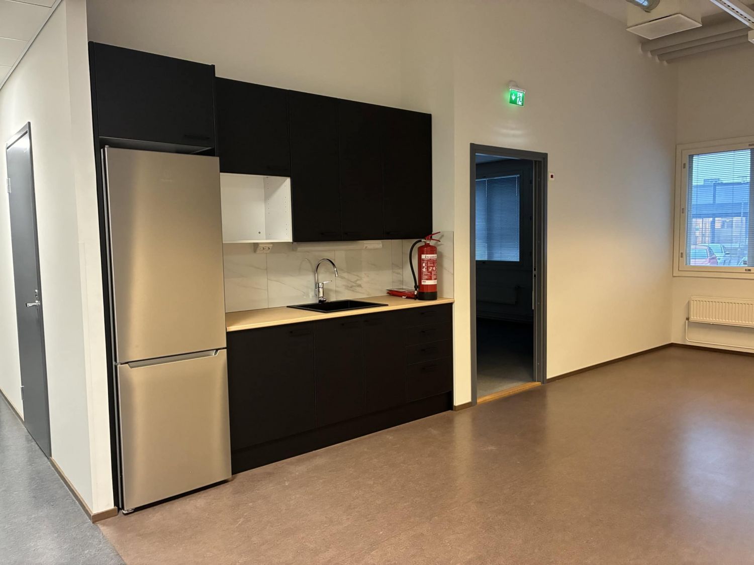 Neuvottelutila ja sosiaalitilat sekä keittiö yhteiskäytössä muutaman muun toimistokäyttäjän kanssa.