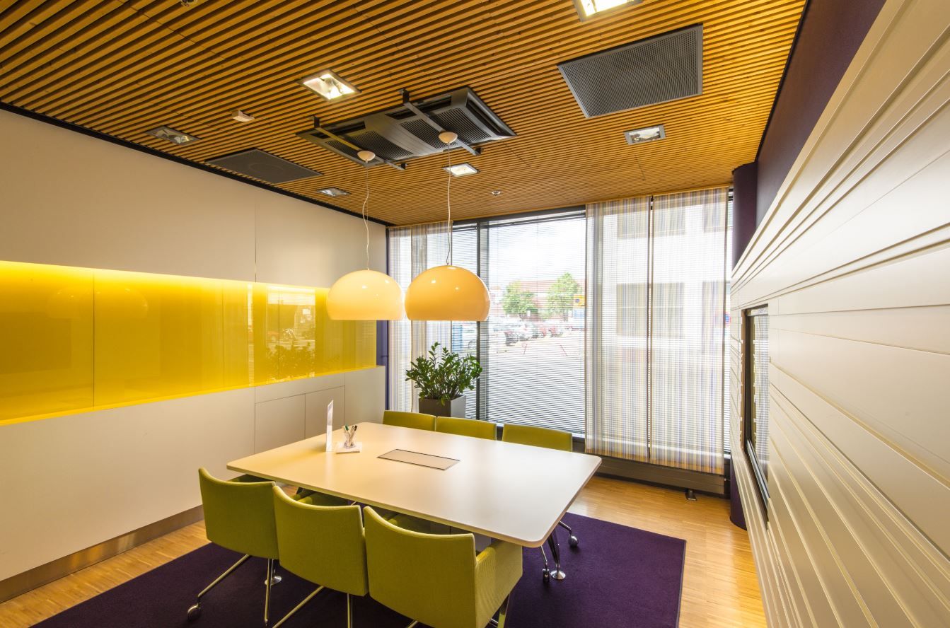 Moderni ja valoisa avotilatoimisto, johon asennetaan uusi keittiö. Isot noin 3 x 3 m ikkunat.