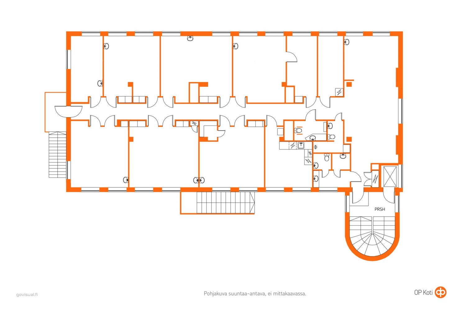 Vapaana kokonainen kerros Rovaniemen keskustan tunnetuimmasta maamerkeistä, Marttiinin vanhasta puukkotehtaasta. Useita valoisia toimistohuoneita käsittävässä toisessa kerroksessa on viime vuosina toiminut neuvola. Rakennuksessa toteutettiin vuosina 1996 - 1998 täydellinen peruskorjaus, mikä mahdollistaa toimimisen moniin erilaisiin tarpeisiin. Talossa on hissi ja pääovelle johtaa ramppi, joten kulku kerroksiin on esteetön. Piha-alueelta löytyy lämpöpistokkeellisia autopaikkoja. Asiakaspysäköintiin on mahdollisuus paitsi pihassa myös Vartiokadun varrella. Kiinteistö on yksi harvoista aikakautensa rakennuksista Rovaniemellä. Kun haluat toimia kaikkien tuntemalla, helposti saavutettavalla sijainnilla, tässä erinomainen vaihtoehto!