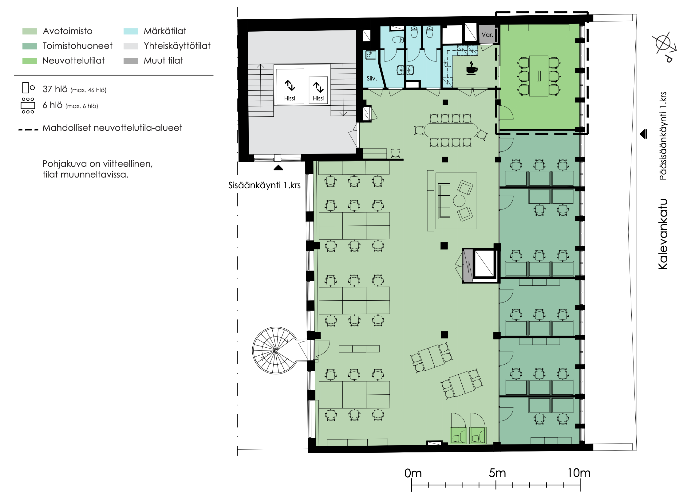 Tämä toimistokiinteistö on vuonna 1928 rakennettu vanha tehdasrakennus, joka on peruskorjattu vuonna 1999. Vanhan tehdasmiljöön henkeä edelleen huokuvat tilat tarjoavat nykyaikaiset ja luonteikkaat puitteet monenlaisille toimijoille. Talossa on monimuotoisia, erikorkuisia tiloja, mikä luo ulottuvuuksia myös erikoisemmille ja vähän särmikkäämmillekin tilaratkaisuille.Tässä ainutlaatuisessa kiinteistössä on vuokrattavana toimisto- ja liiketilaa seitsemässä kerroksessa. Avarat tilat ovat tarpeen tullen muunneltavissa yrityskohtaisesti. Kellarikerroksesta on vuokrattavissa myös varastotiloja.