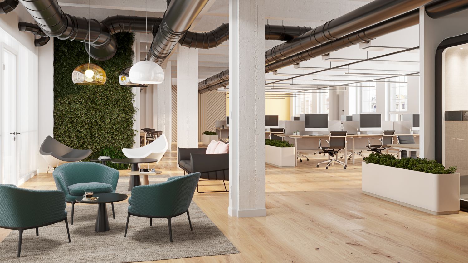 Vanhassa ja luonteikkaassa tehdasrakennuksessa sijaitsevia nykyaikaisia toimistotiloja vain kivenheiton päässä kauppakeskus Kampista.