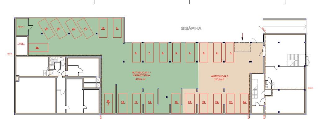 Kaupan yhteydessä on myös mahdollista siirtää ostajalle pohjakuvassa näkyvän n. 213m2 kokoisen autosuojatila nro 2 vuokrasopimus.