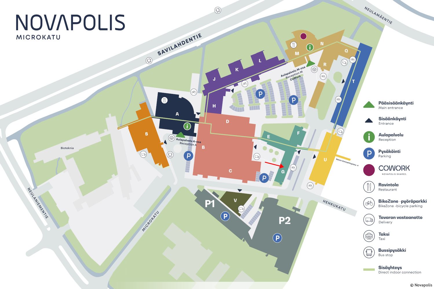 Sijainti on aivan Savilahden keskiössä, jossa koulutus, tutkimus ja liike-elämä kohtaavat. Kuopion keskusta on alle 10 minuutin matkan päässä ja Kuopion yliopistollinen sairaala KYS aivan lähettyvillä. Kiinteistölle on erinomaiset kulkuyhteydet julkisella liikenteellä sekä autolla.