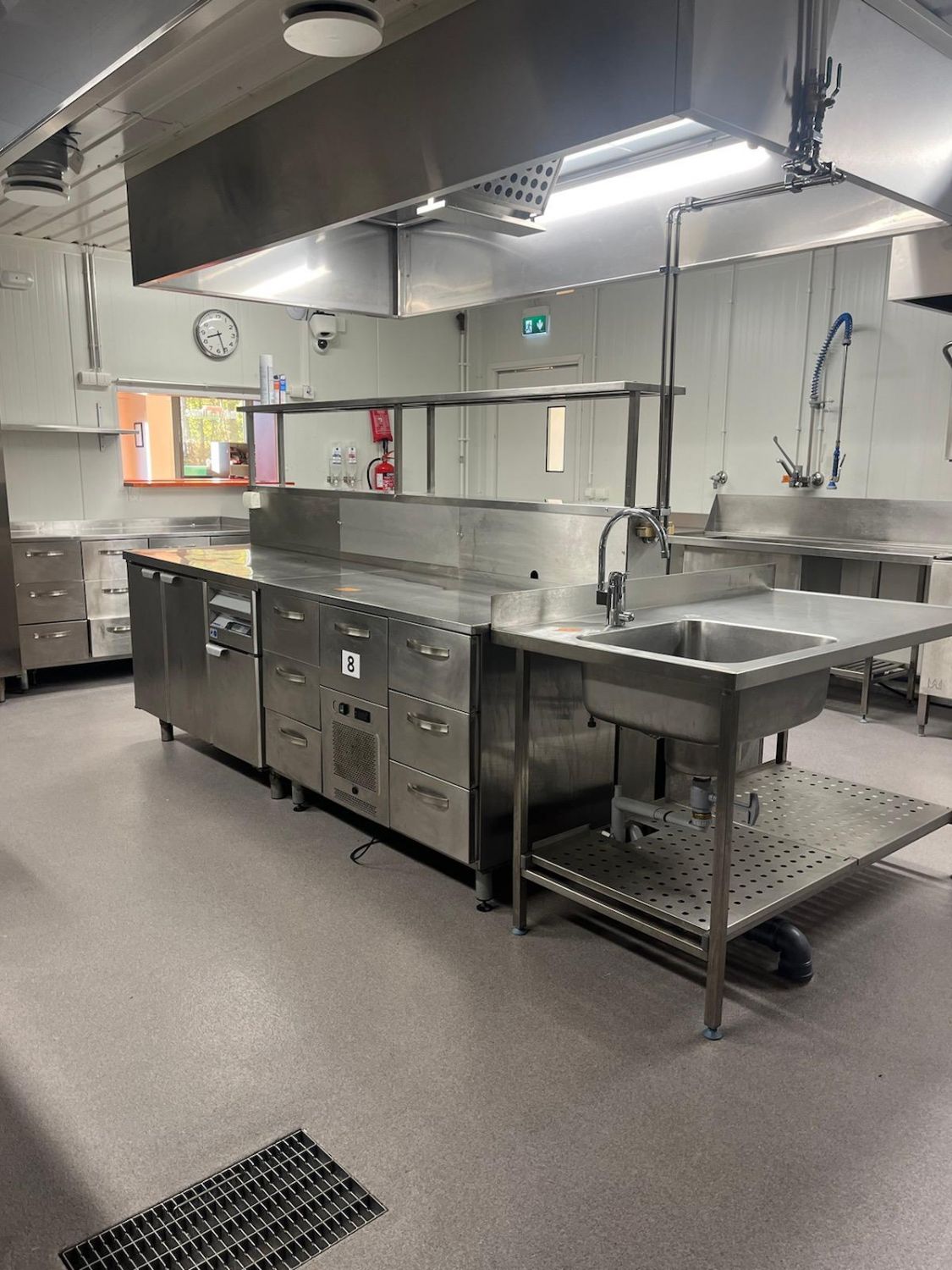 Reilun kokoinen ammattikeittiö, jossa on valmiina kylmiö, pakastin, huuvat rasvasuodattimilla, lattiakaivo ja keittön kiinteitä koneita. Helposti puhdistettavat pinnat. Tila on hyväksytty elintarviketilaksi.