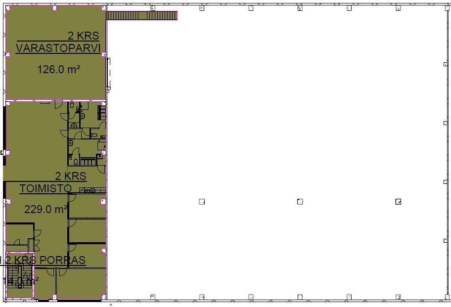 STC Pressi - Varasto 1 375 m² + parvi 126 m² + toimisto ja myymälä 483 m², yht. 1984 m²