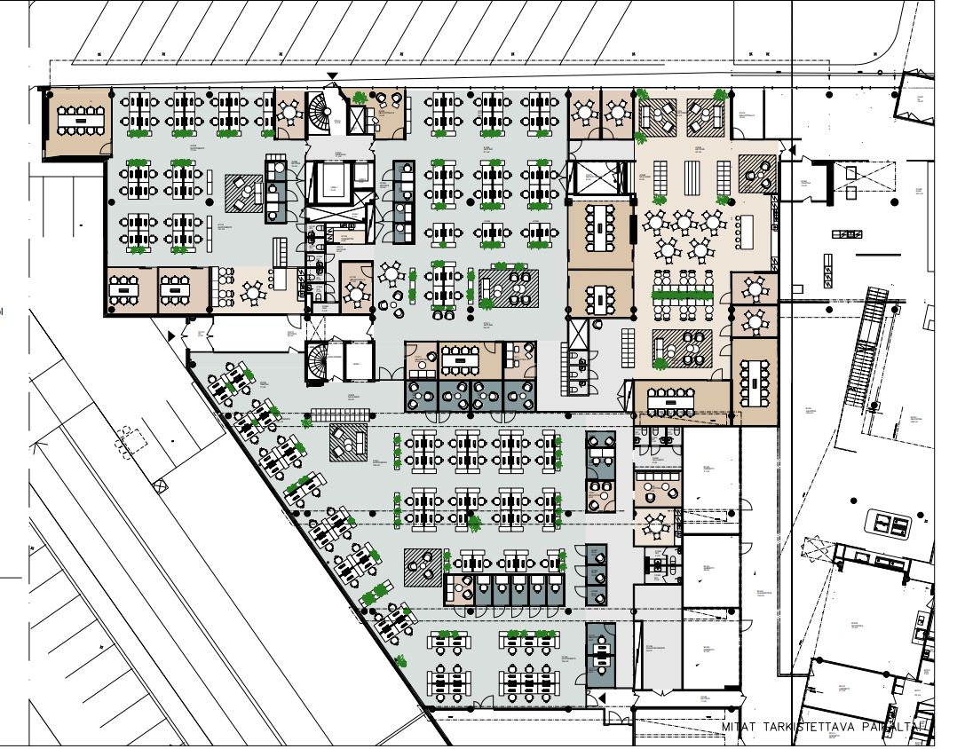 Vuokrattavana ensimmäisen kerroksen avaraa, siistiä, modernia toimistotilaa. Tilassa on avotilaa, työhuoneita, neuvotteluhuoneita, 4 keittiö-/taukotilaa.