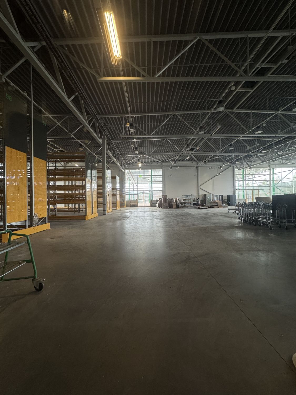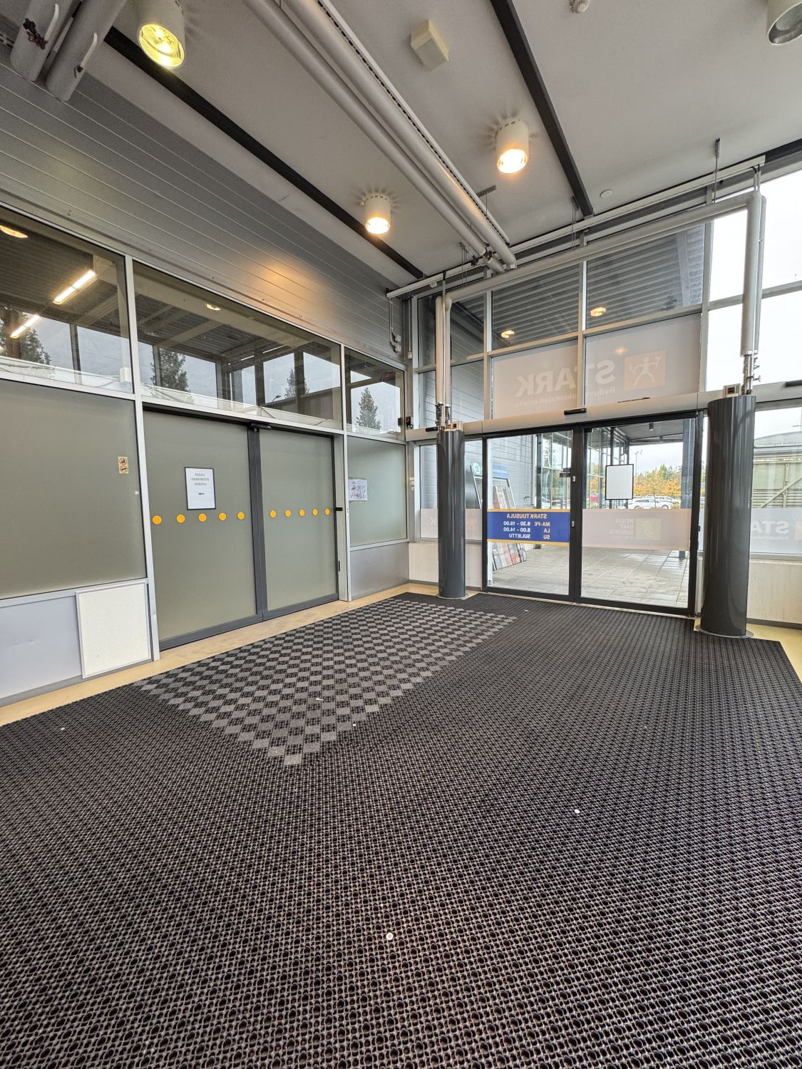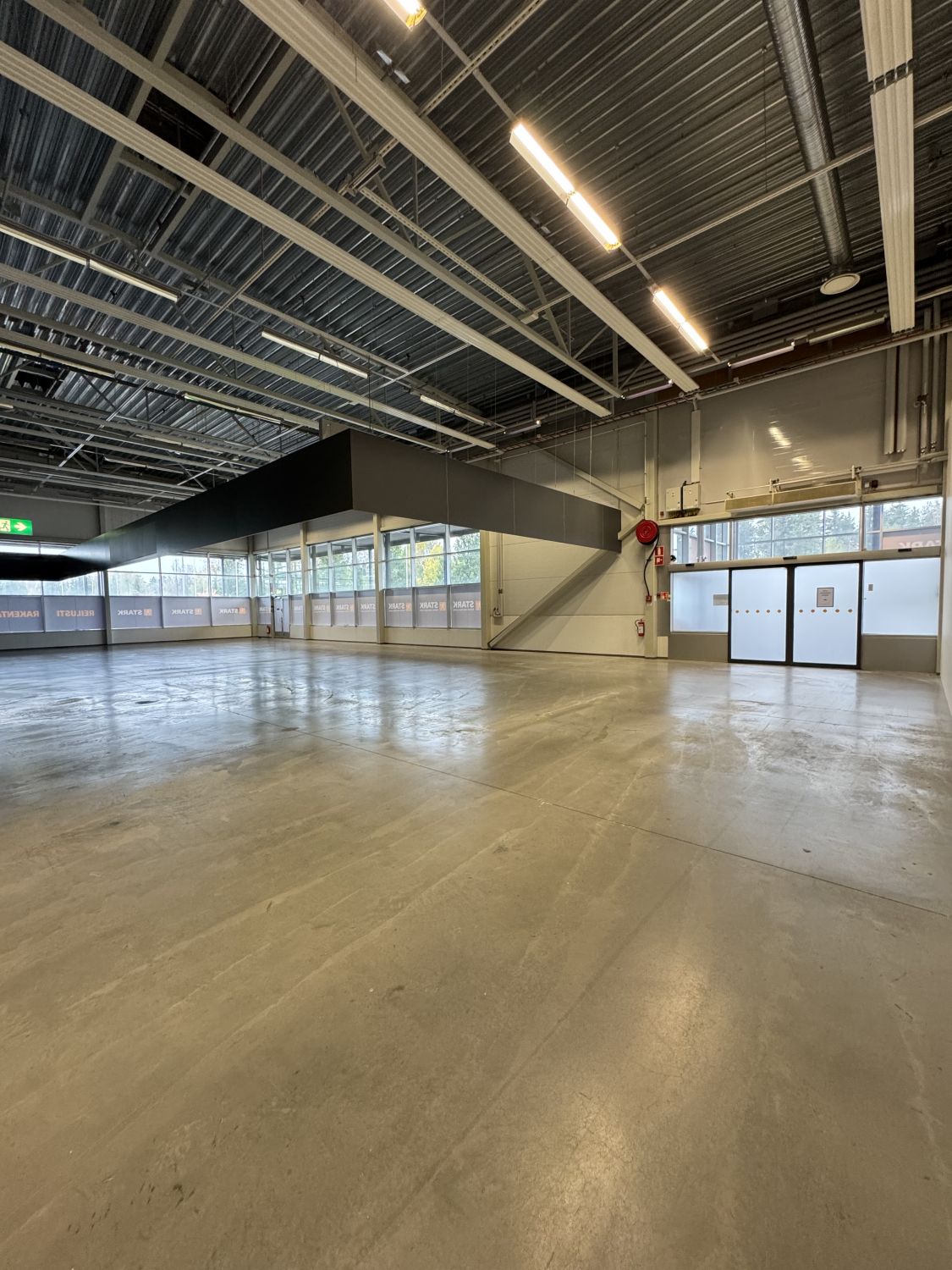 Lämmin myymälätila (1900m2) on vuokrattavissa kokonaan taikka jaettavissa puoliksi, mutta puolilämmin/kylmätila sekä katos vuokrataan edellä mainituin kokonaisuuksin. Tällä hetkellä tilajako on tehty valmiiksi 1900m2 kokoiselle myymälälle. Tämän lisäksi henksutilat erikseen. Käynti tilaan tuulikaapista joka on jaettu Starkille ja tulevalle toimijalle.