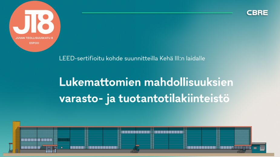 Pohjoismaiden johtava kiinteistösijoittaja ja -kehittäjä Areim suunnittelee uutta, modernia kiinteistökohdetta Espoon Juvanmalmin teollisuusalueelle. Työnimellä JT8 kulkeva hanke tarjoaa nykyaikaiset ja tehokkaat tilaratkaisut esimerkiksi varastoinnin, logistiikan tai valmistavan teollisuuden tarpeisiin.