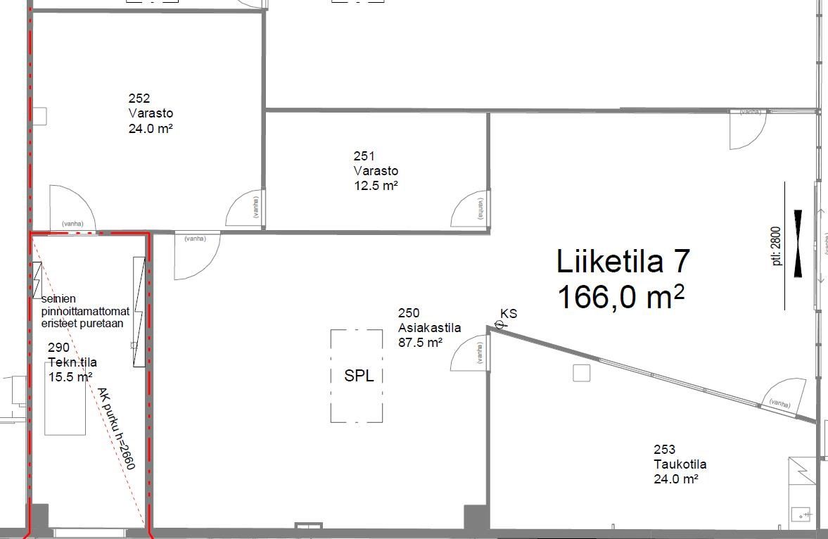 Avotilaa 87.5m2, varasto 24m2, varasto 12,5m2 sekä taukotila 24m2.