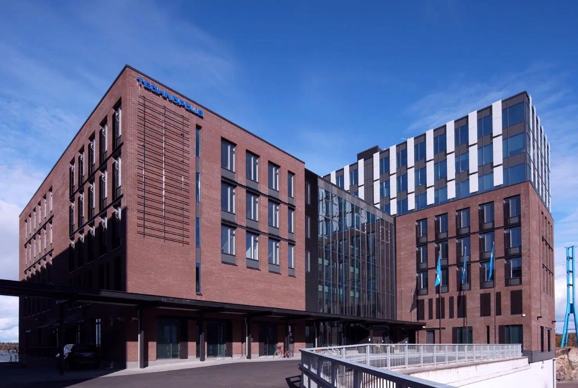Moderni toimistotalo varustettuna korkealuokkaisella teknologialla ja palveluilla.
