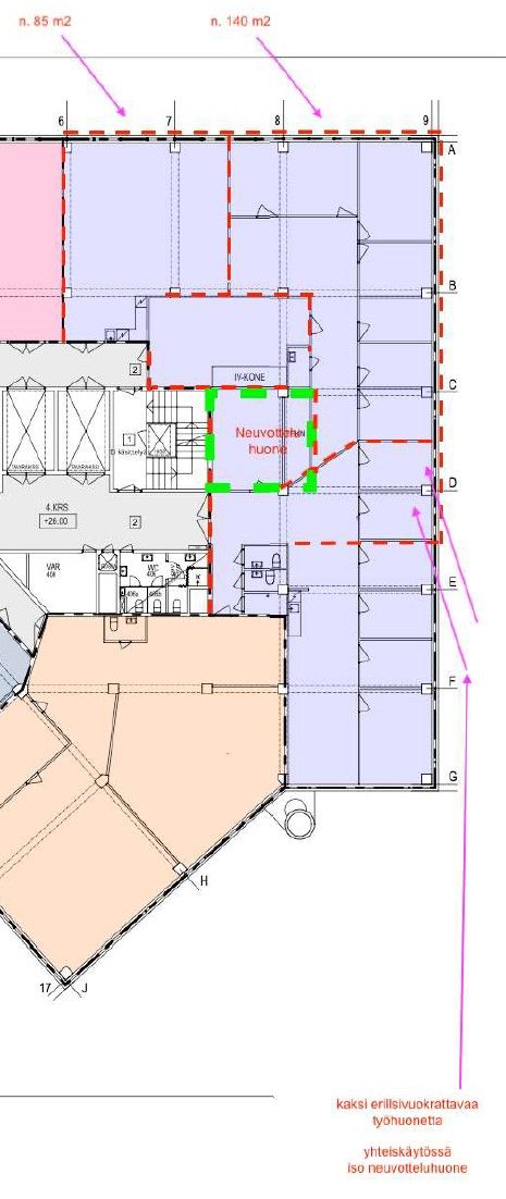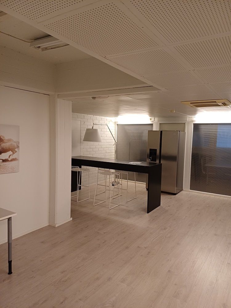 Viereinen avotila 85 m2 voidaan yhdistää tilakokonaisuudeksi noin 230 m2. Avotilassa on oma keittiö.