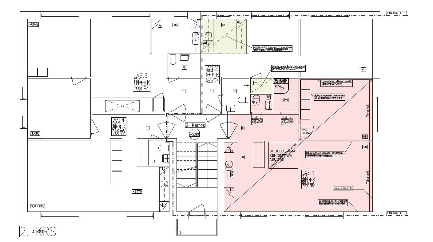 rakennustietokannan mukaan kerrosalaksi ilmoitettu 542m2, kokonaisalaksi 812 m2 ja tilavuudeksi 2300 m3. Ei tarkistusmitattu!