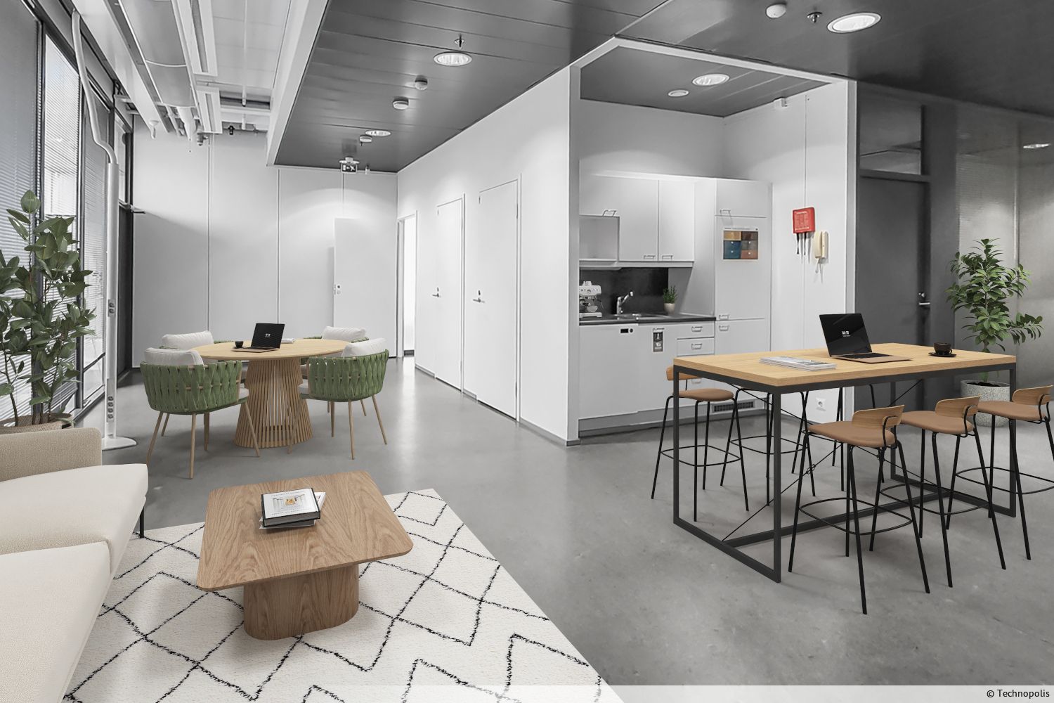 Tila on mahdollista vuokrata myös kalustettuna. Saatavilla ovat lisäksi työtilan suunnittelu- ja muuttopalvelut.
