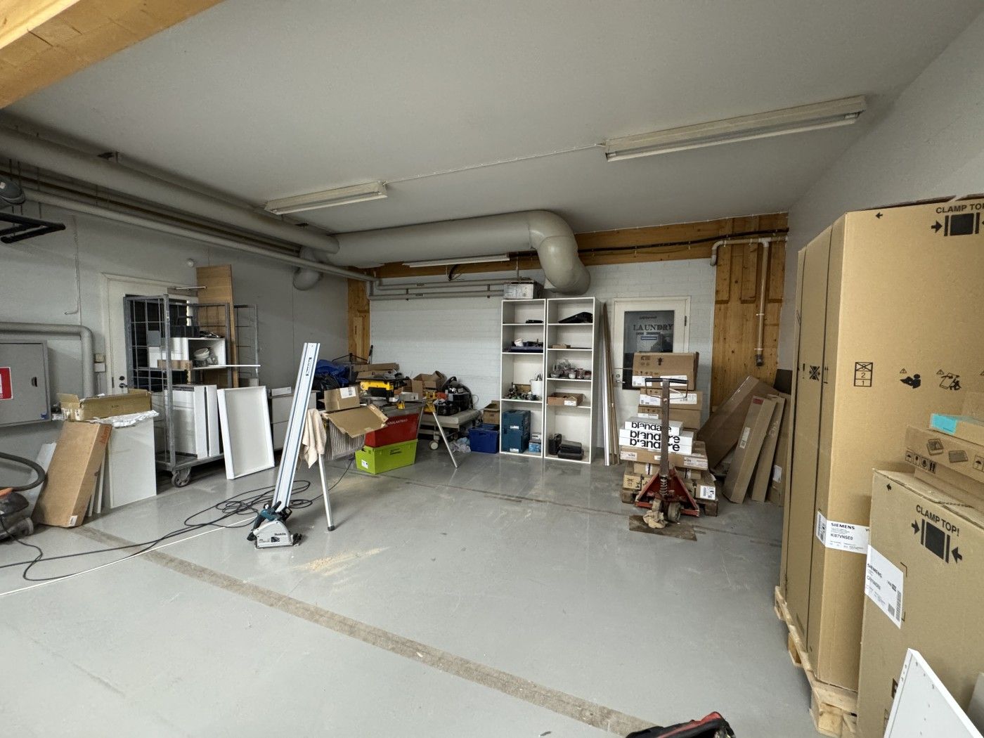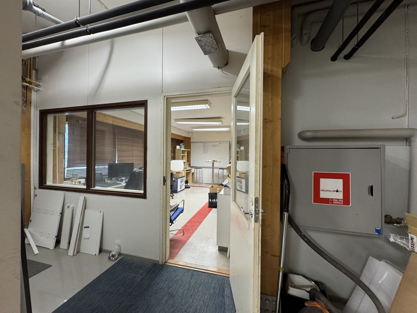 Vapautumassa lokakuun aikana monikäyttöinen tila jos tarvitset sisäänajettavaa varastotilaa (262m2) ja 74m2 toimistotilaa. Tiloja voidaan tarpeen mukaan muokata. Tilan korkeus n.3m ja palkkien kohdalta vähän vähemmän.