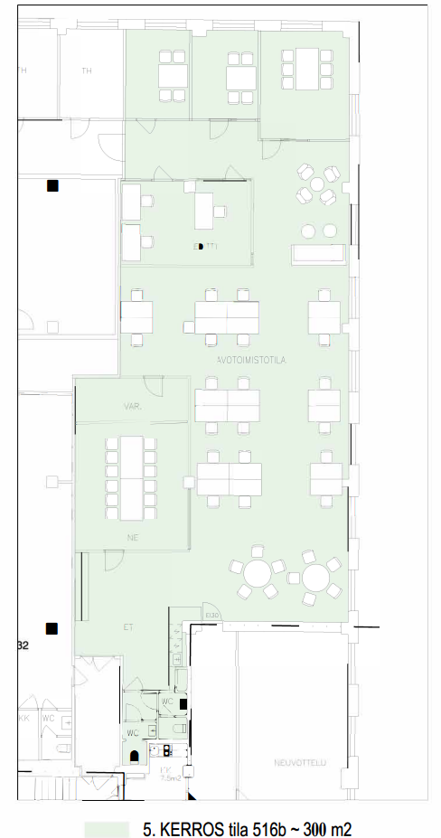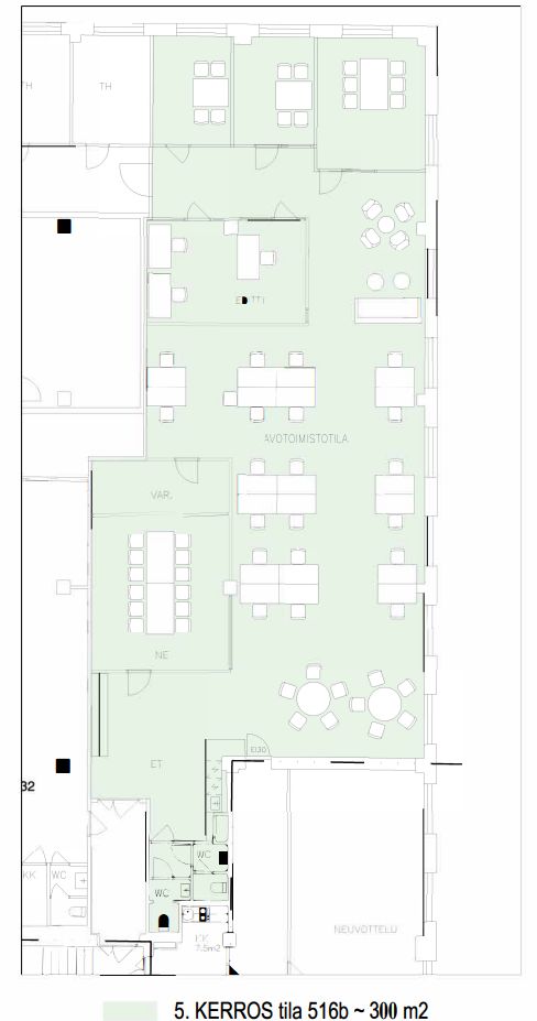 Tyylikäs ja persoonallinen toimitila sijaitsee Punavuoren historiallisessa Merikorttelissa, jossa vanhan tehdasmiljöön tunnelma yhdistyy moderniin toiminnallisuuteen. Viidennen kerroksen 306 m² tila tarjoaa avarat ja valoisat puitteet monenlaiseen käyttöön. Korkea huonetila ja suuret ikkunat tuovat tilaan ilmavuutta ja inspiroivaa valoisuutta.