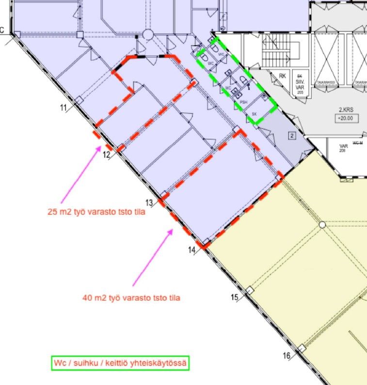 Toimisto- / työtilaa Pitäjänmäen liikenneympyrän tuntumassa. Toinen kerros, vapaana 25 m2 ja 40 m2 tilat. Henkilöhissi ja tavarahissit 2 kpl:tta. Yhteiskäyttöiset wc:t, suihku ja pieni keittiö. Pienempi tila jaettu kahdeksi huoneeksi.