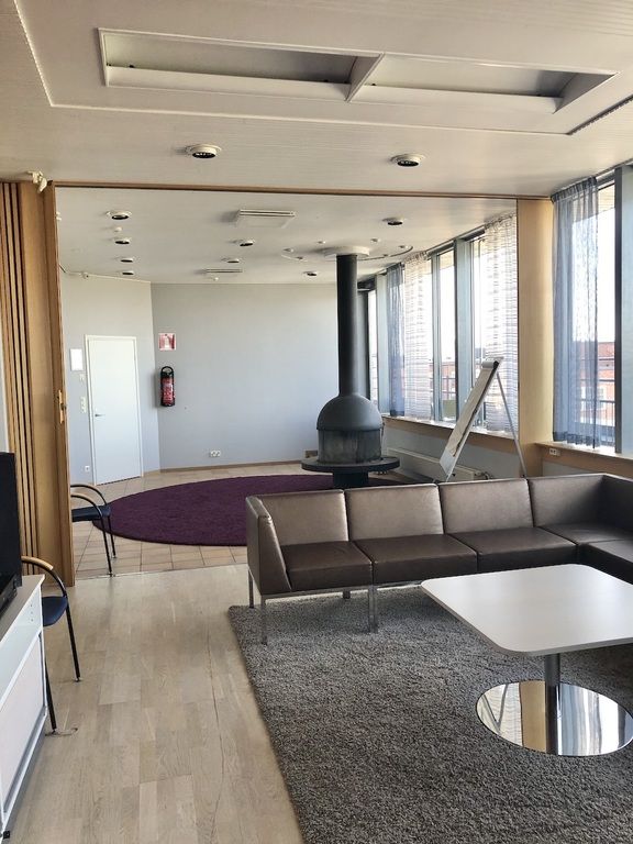 Tämä 394 m² toimistotila sijaitsee kiinteistön 1. kerroksessa. Toimistossa on avotilaa, yksi toimistohuone ja neuvotteluhuone. Vapautuminen 1.1.2026. Kuvat ovat kiinteistön yleisistä tiloista.