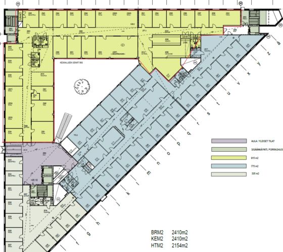 Tämä 915 m² toimistotila sijaitsee kiinteistön 2. kerroksessa. Vapautuminen 1.1.2026. Kuvat ovat kiinteistön yleisistä tiloista.
