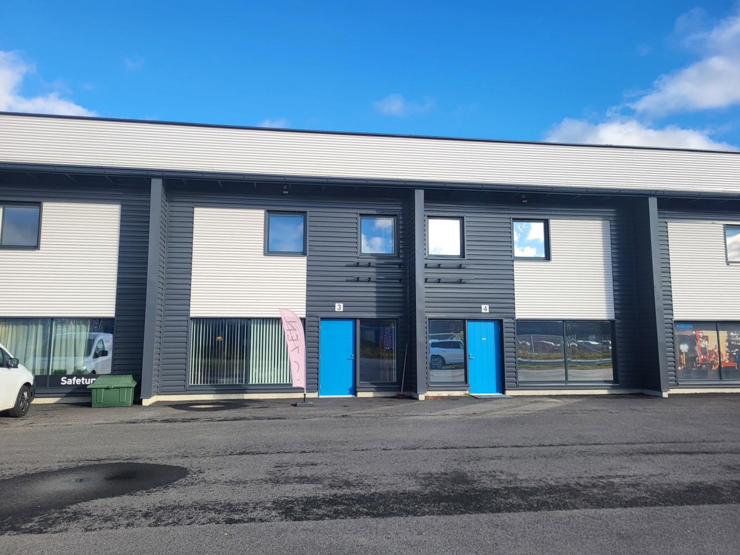 Vuonna 2020 valmistuneen rakennuksen huoneisto on heti vapaana. Alakerrassa tilaa esim. myymälälle ja täyskorkeassa halliosassa voi tehdä monenlaista toimintaa. Yläkerrassa hyvät toimistotilat.
