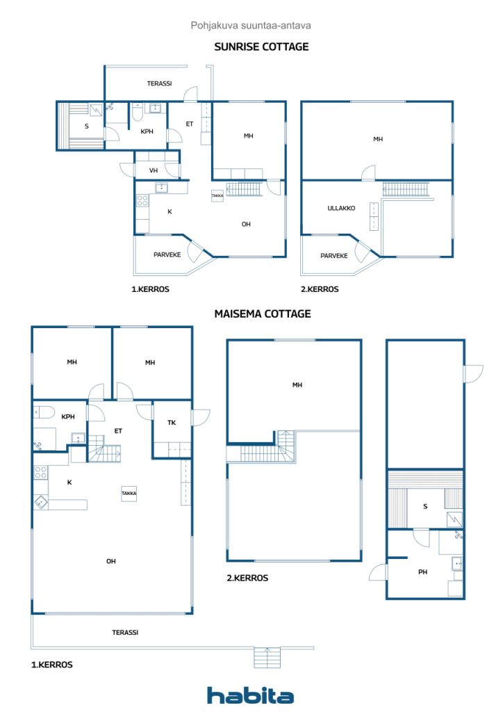 -Kiinteistöillä 297-499-167-30, 297-499-167-31 ja 297-499-167-32 (Sunrise Cottages) sijaitsee 6 kpl parihuviloita (2kpl/kiinteistö) joiden asuinpinta-ala on 77,5m² + matalaa tilaa 2. kerroksessa n.12,5m².