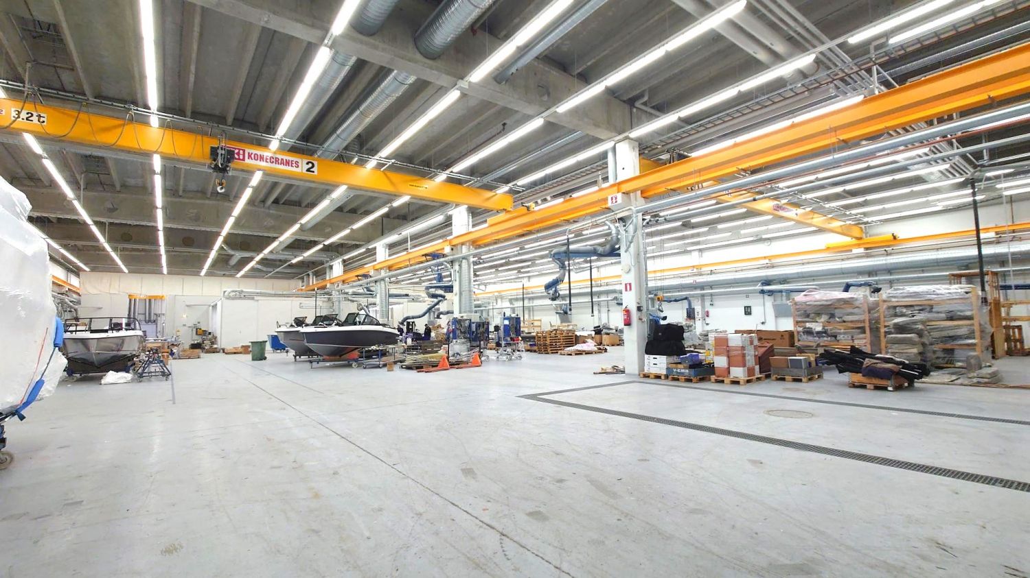 Korkean hallitilan vapaa korkeus (nosturin palkkiin) on noin 5,9 metriä. Kattavaan varusteluun kuuluvat muun muassa siltanosturit 2 x 2 t ja 3,2 t, paineilmaverkosto, alipaineistettua tilaa, ilmankostutinjärjestelmä, keskusimuri ja LED-valaistus. Rakennuksen toisessa päässä kaksi nosto-ovea 4,5 x 3,25 m (l x k) ja vastakkaisessa päässä kolme nosto-ovea noin 4,5 x 5,37 m.