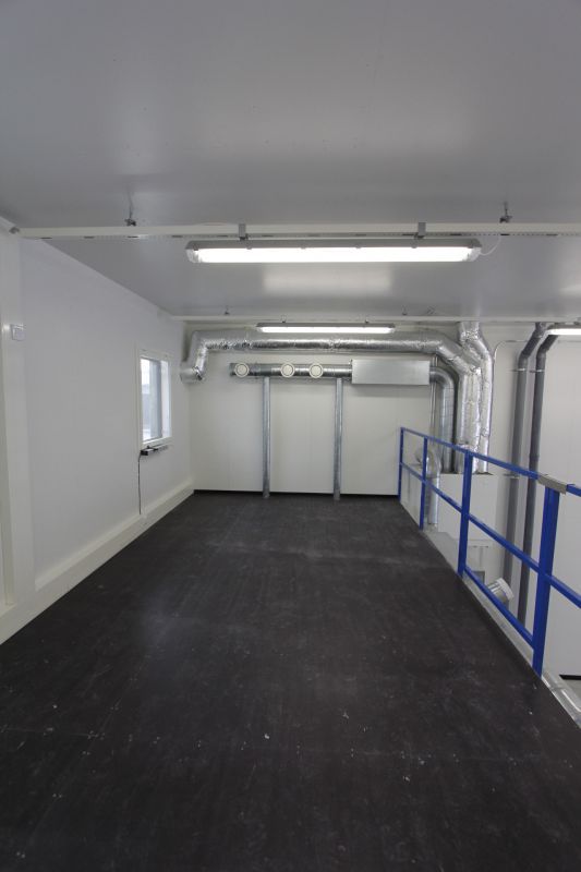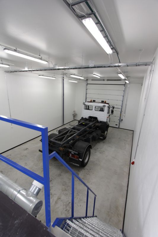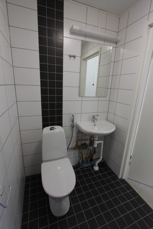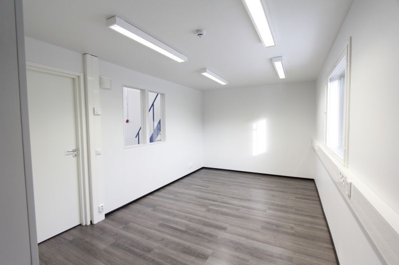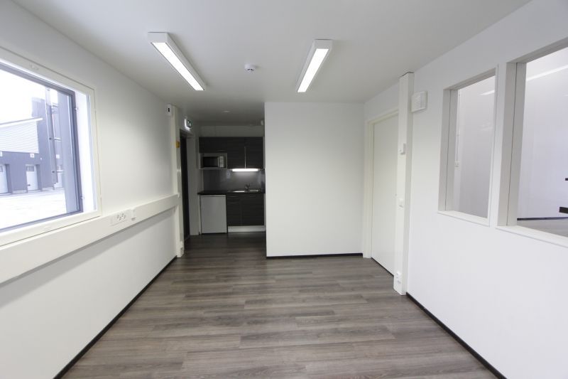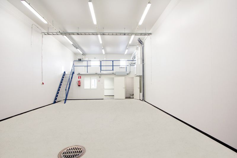 Hallissa on valmiina varusteltu toimisto, jossa oma keittiö, varusteena jääkaappi, mikrouuni ja vesiallas (lämmin- ja kylmä vesi valmiina). Lisäksi oma wc- ja suihkutila laatoitettuna, jossa pyykinpesukone.