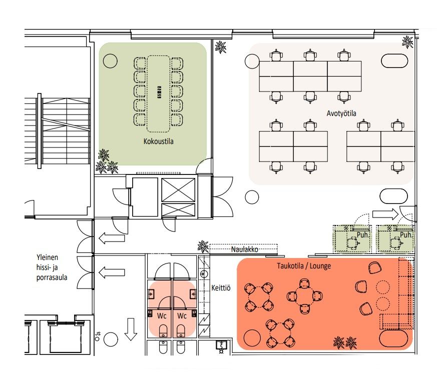 Vuokrattavana 2. kerroksen muuttovalmis toimistotila, joka remontoidaan käyttäjän tarpeiden mukaiseksi. Ohessa havainnollistavia kuvia kiinteistön tiloista.