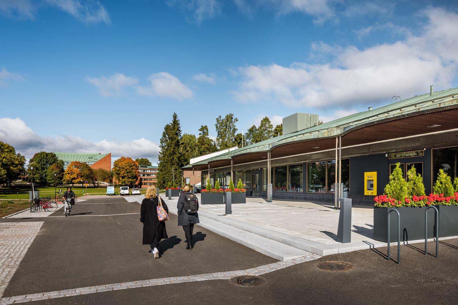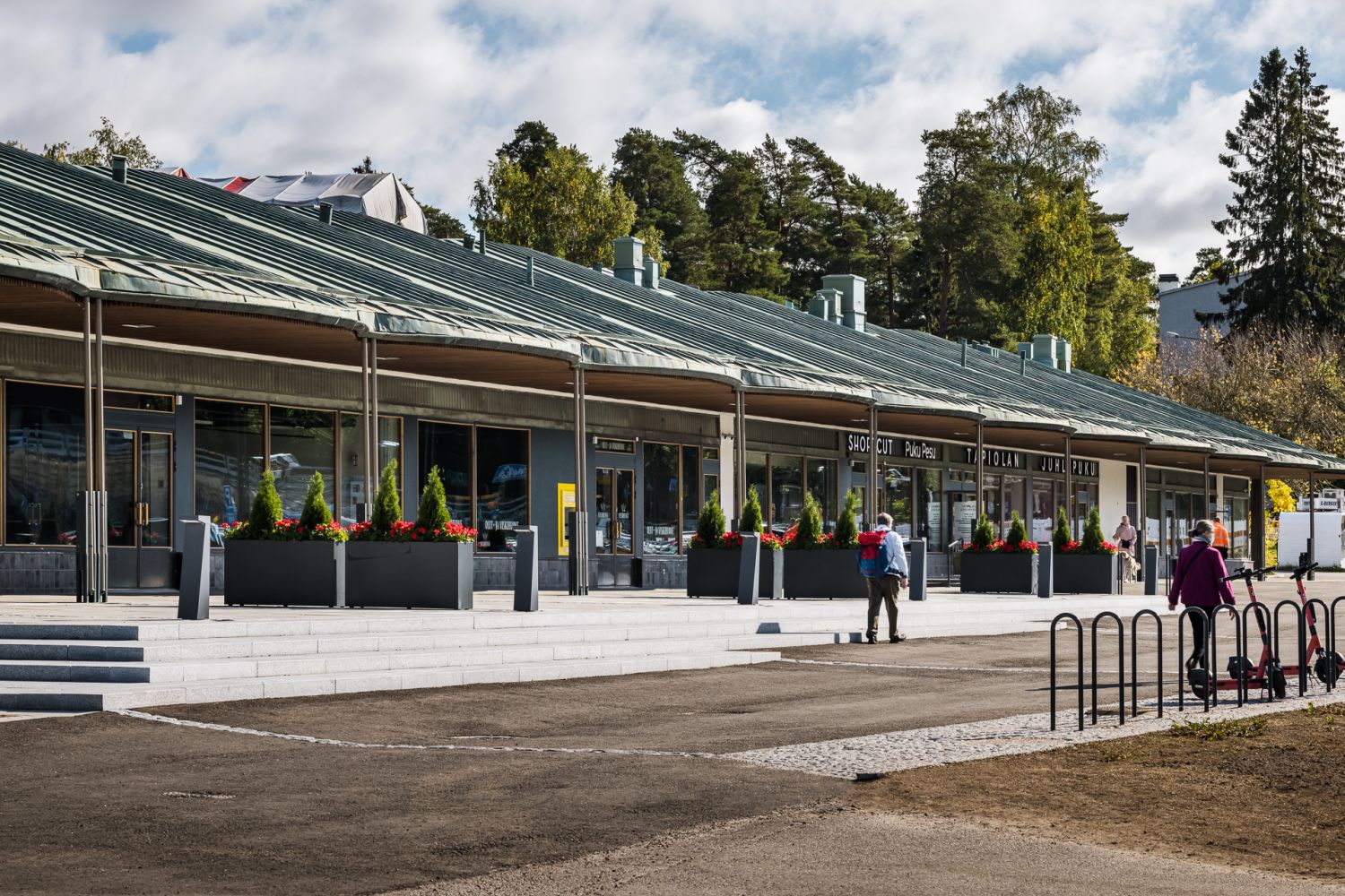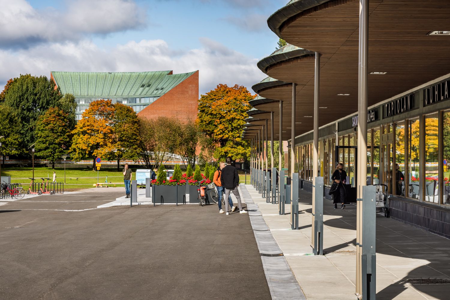 Rakennuksen edessä on myös maksuttomia pysäköintipaikkoja, mikä parantaa asiointimukavuutta.