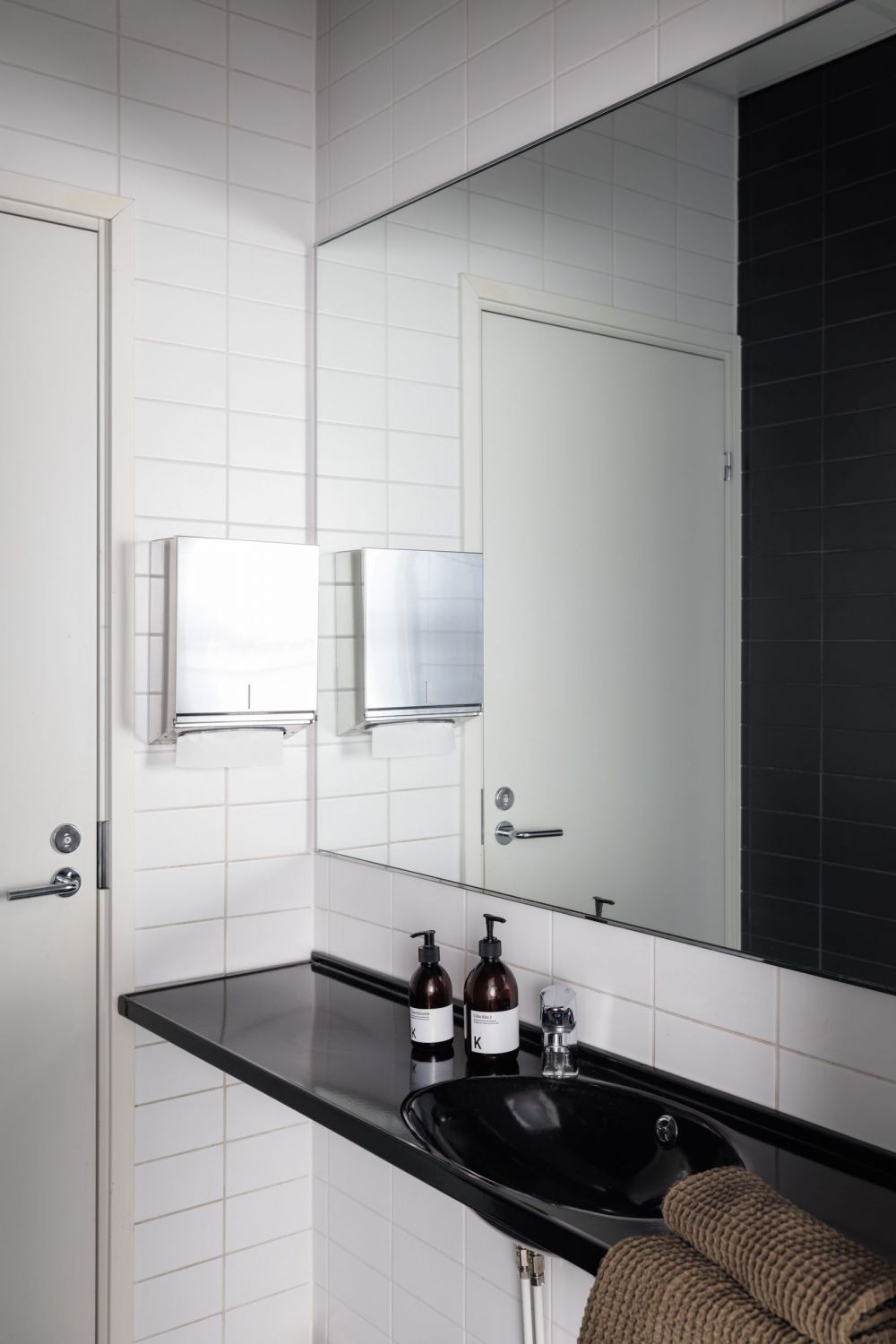 Palvelut on keskitetty talon pohjakerrokseen. Muunneltavat tilat ja käytävien vähyys tehostavat tilankäyttöä ja pienentävät siten tilakustannuksia.