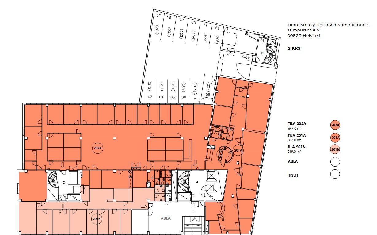 Vuokrattavana 2. kerroksen toimisto 647 m2.