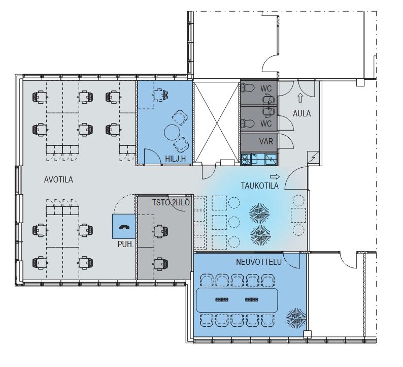 Stella Business Parkin toimitilat ovat helposti muunneltavissa, yrityksesi tarpeisiin sopiviksi. Stellassa tilat muuttuvat joustavasti yrityksesi elinkaaren mukaan. Tämän mahdollistaa esimerkiksi väliseinien helppo siirreltävyys.