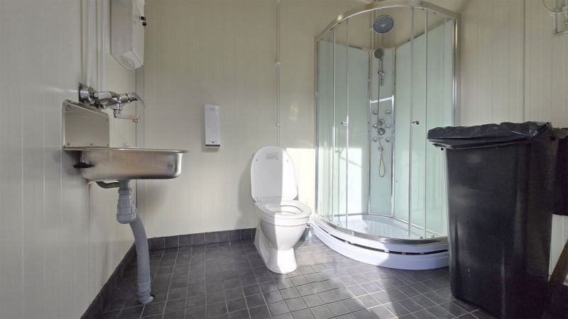 Rakennuksessa on lisäksi kaikkien yhteiskäytössä oleva WC ja suihkutila sekä oma aurinkovoima sähköntuottoon.