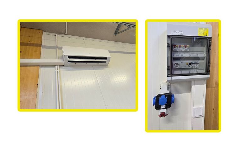 Kunto, varusteet ja palvelut: Lattiakaivo, nosto-ovi, vesipiste, wc, voimavirta, ilmalämpöpumppu