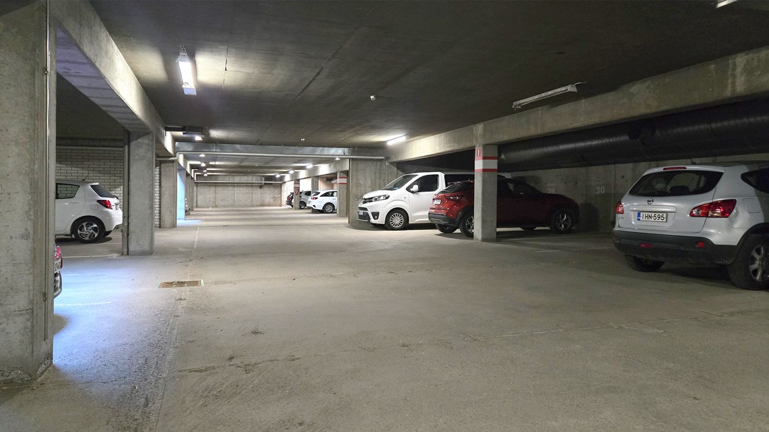 Autopaikkoja on mahdollista vuokrata rakennuksen parkkihallista hintaan 90 €/kk ja pihapaikkoja on myös 50 €/kk.