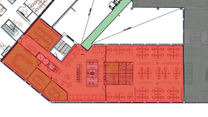 Tämä 670 m² kokoinen tila sijaitsee kiinteistön 4. kerroksessa. Toimistossa on huoneita, avotilaa sekä omat keittiö- ja wc-tilat. Kuvat ovat yleiskuvia kiinteistöstä ja mallitoimistosta.