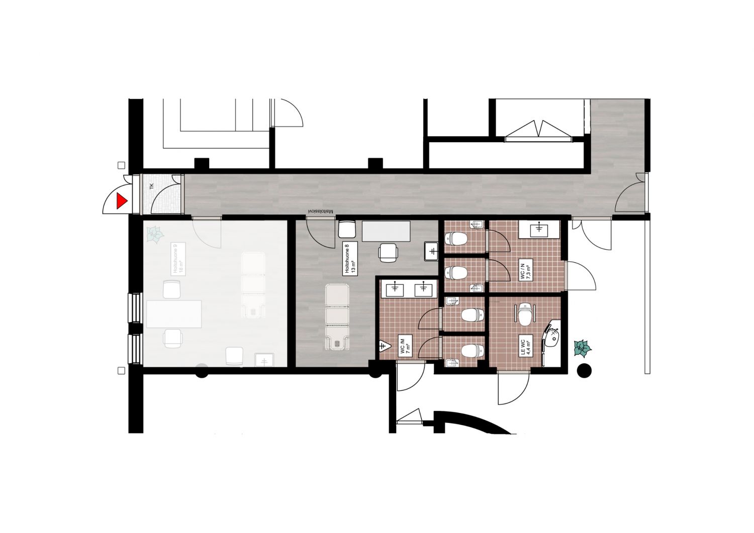 Kaikissa huoneissa on vesipiste altaalla ja odotustilassa on erillinen, juuri remontoitu yhteiskäyttö wc.