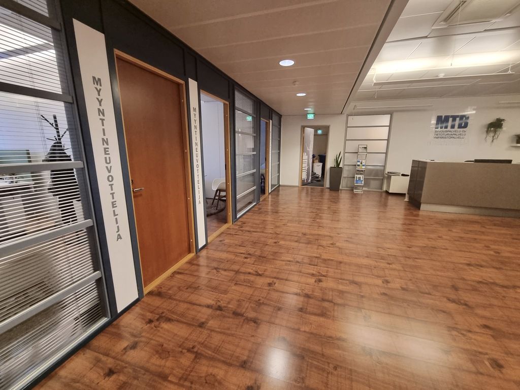 Vuokrattavana pientoimistotilaa kiinteistön 2. kerroksessa sijaitsevasta toimistohotellista. Vuokrattavia tilakokoja on väliltä 12 m² - 103 m². Keittiö- ja wc-tilat ovat vuokralaisten yhteiskäytössä. Vuokraan sisältyy mm. sähkö, siivous, internet ja neuvottelutilan käyttö. Kuvat ovat pientoimistoalueelta.