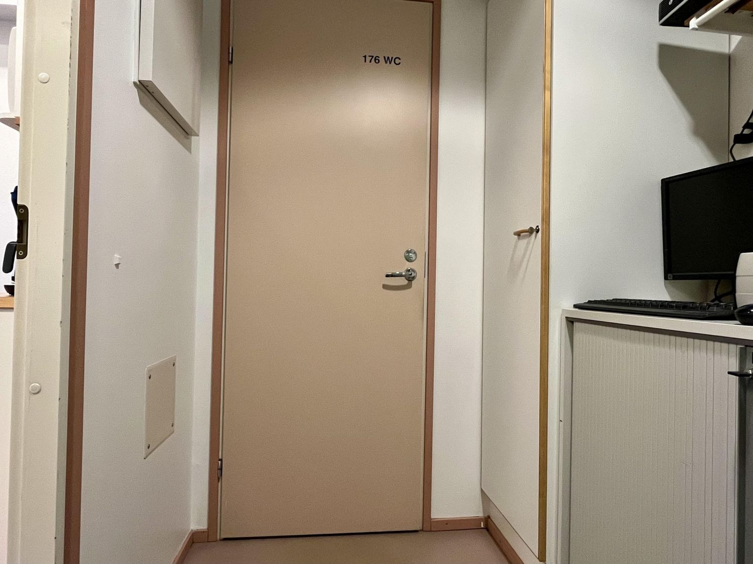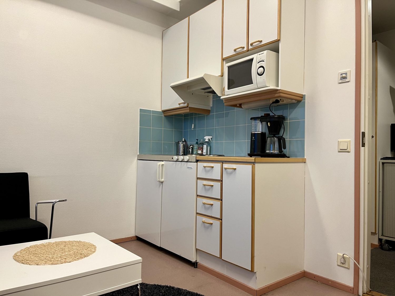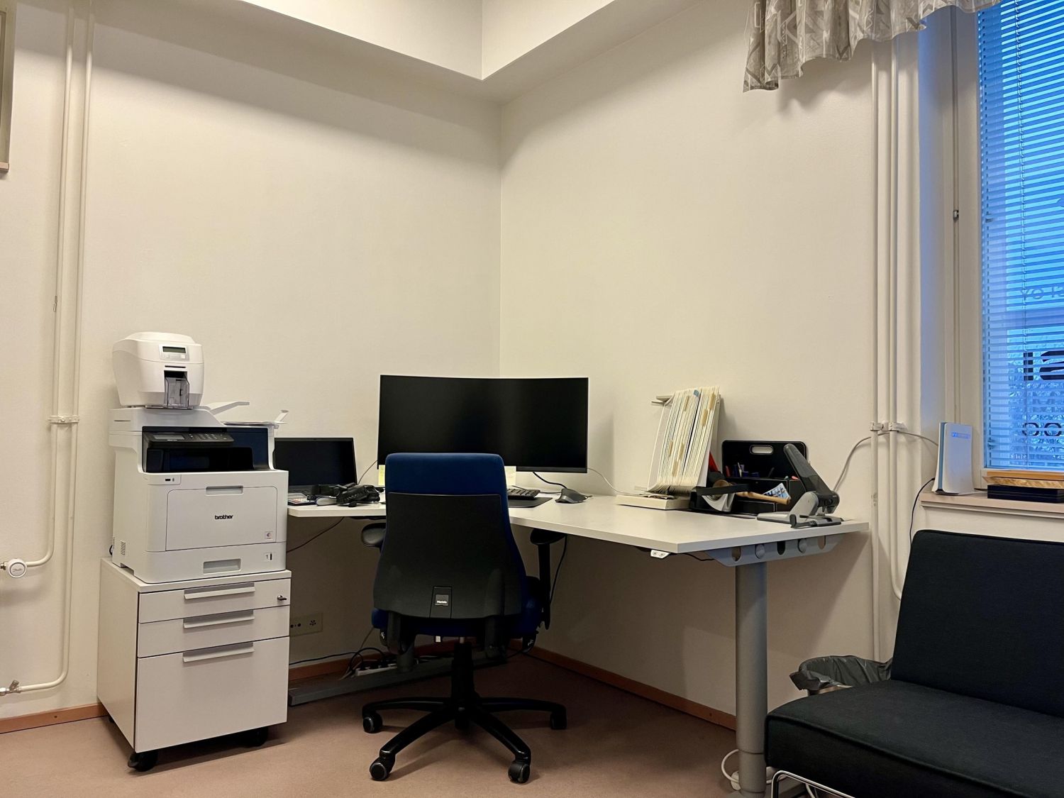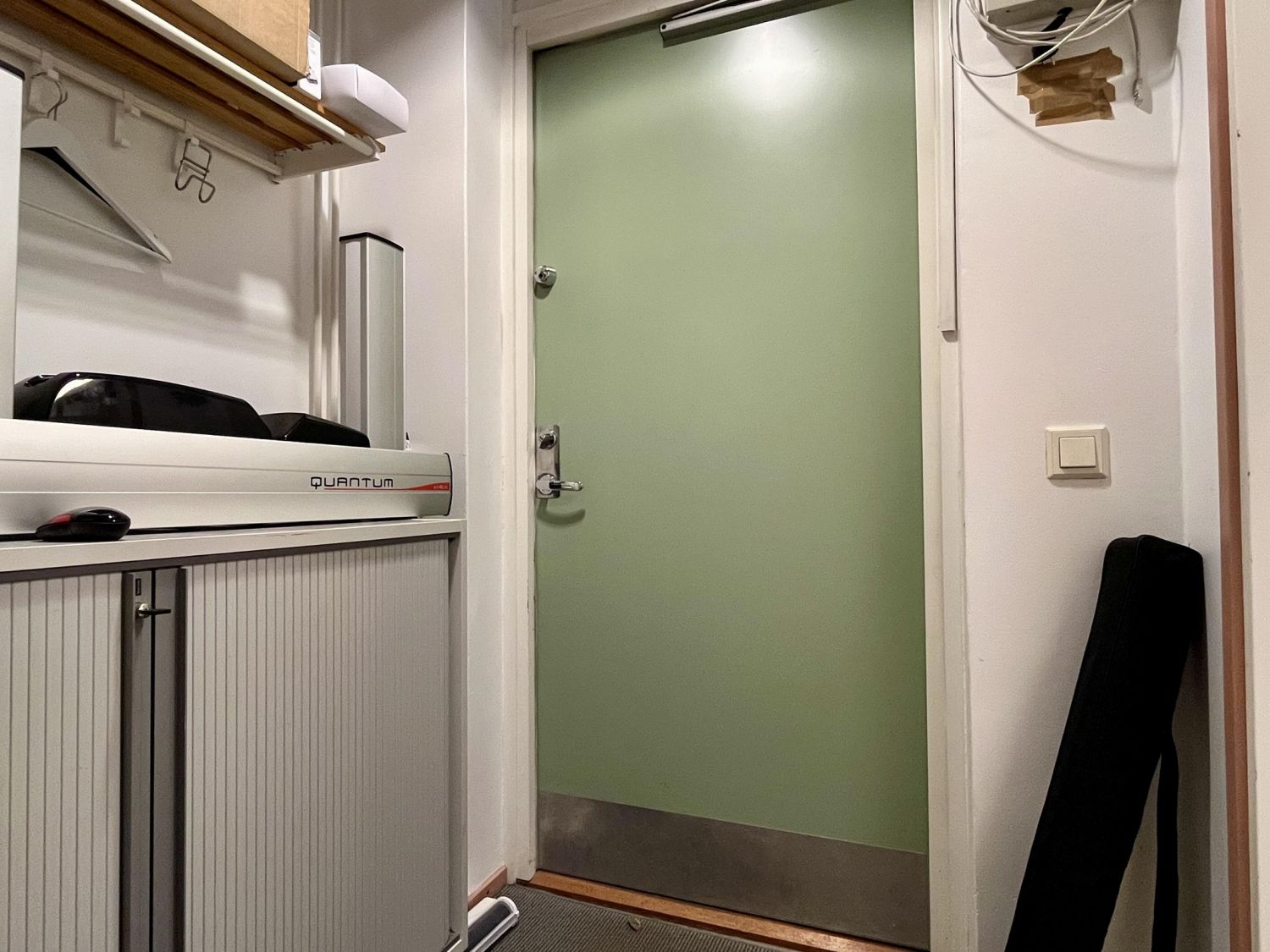 18,5 m² pitää sisällään eteisen hyvällä säilytystilalla, minikeittiöllä varustetun toimistohuoneen sekä erillisen wc:n. Asiakkaille on alueella runsaasti kiekollista parkkitilaa. Pintamateriaalina on muovimatto ja seinät on tapetoitu.