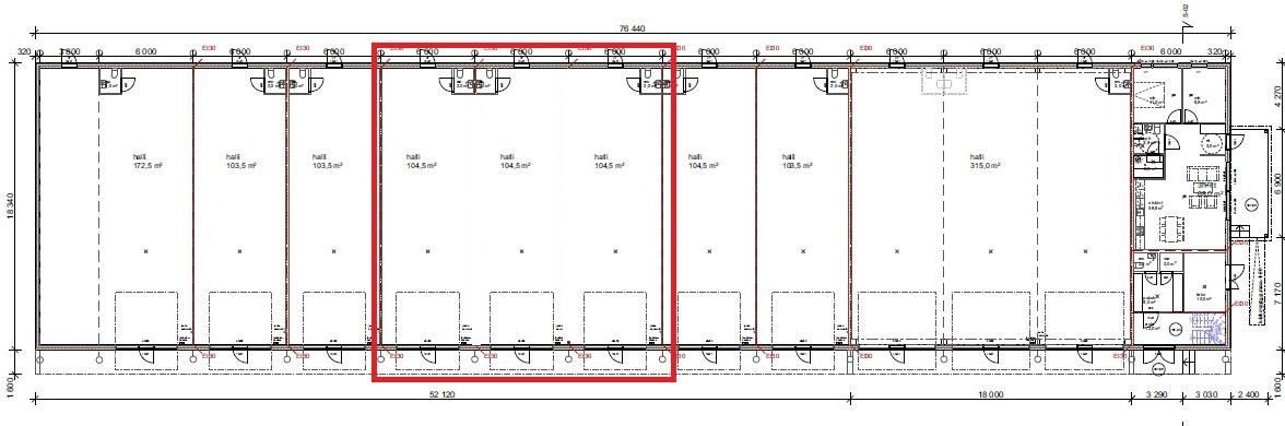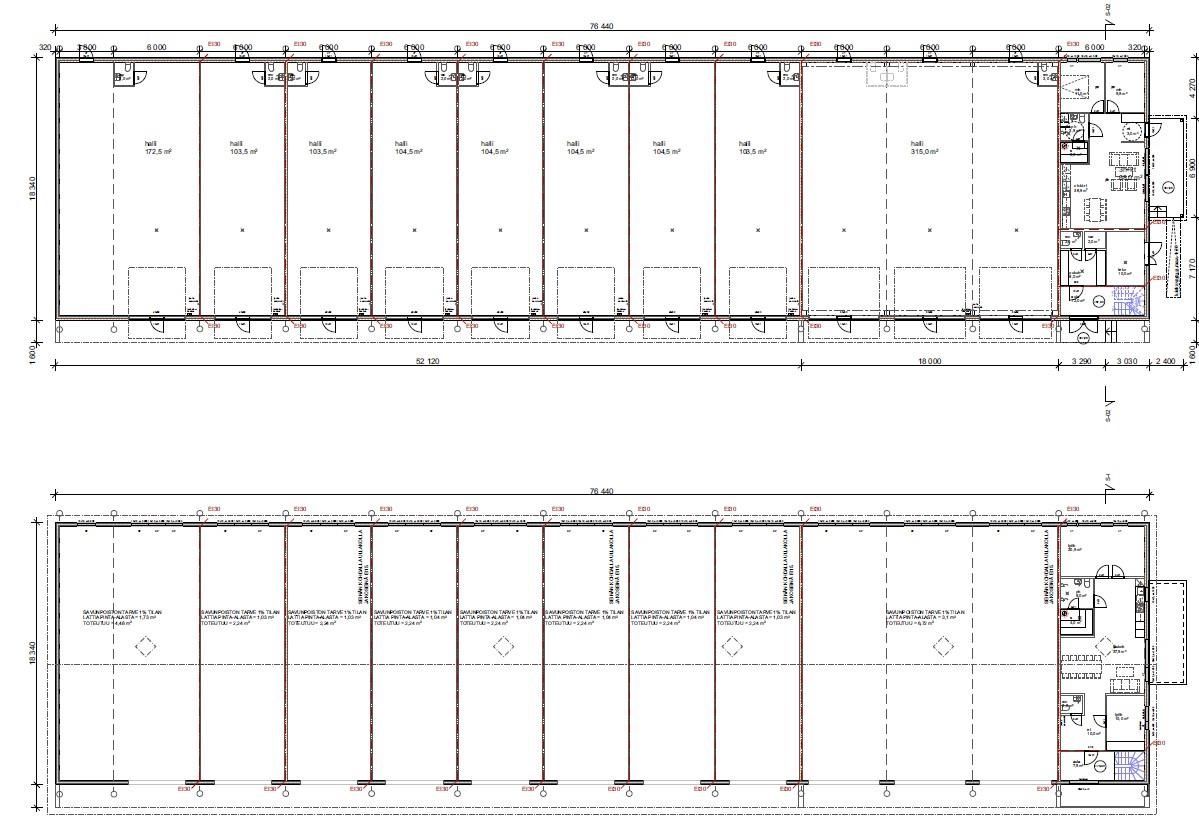 Kolmen tallin kokonaisuus, Talli 4, 5, ja 6 yht. 313,5 m² (yksittäinen talli 104,5 m²)